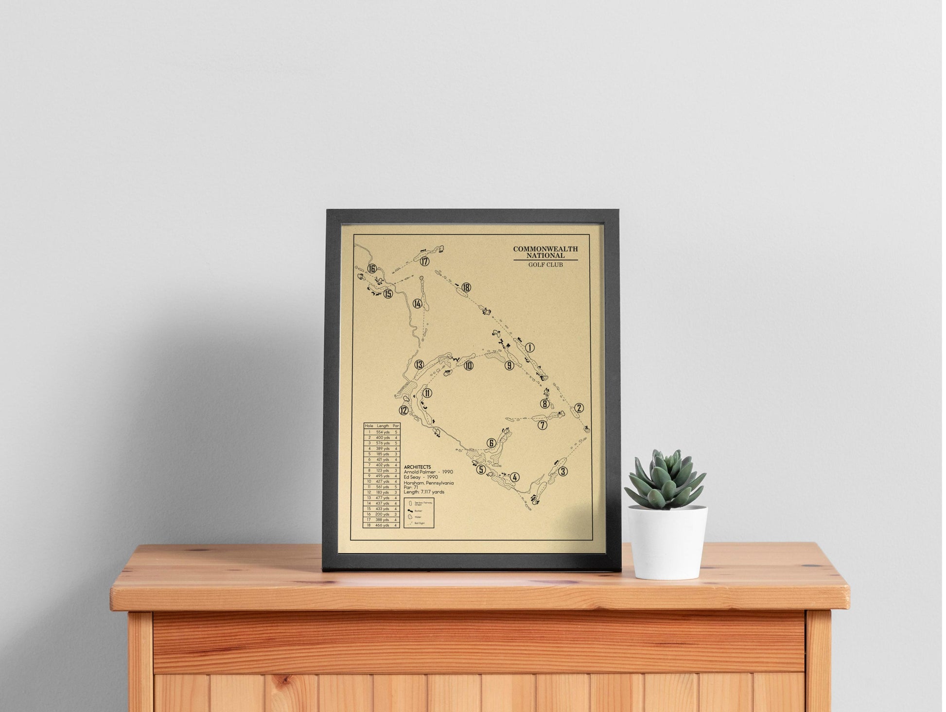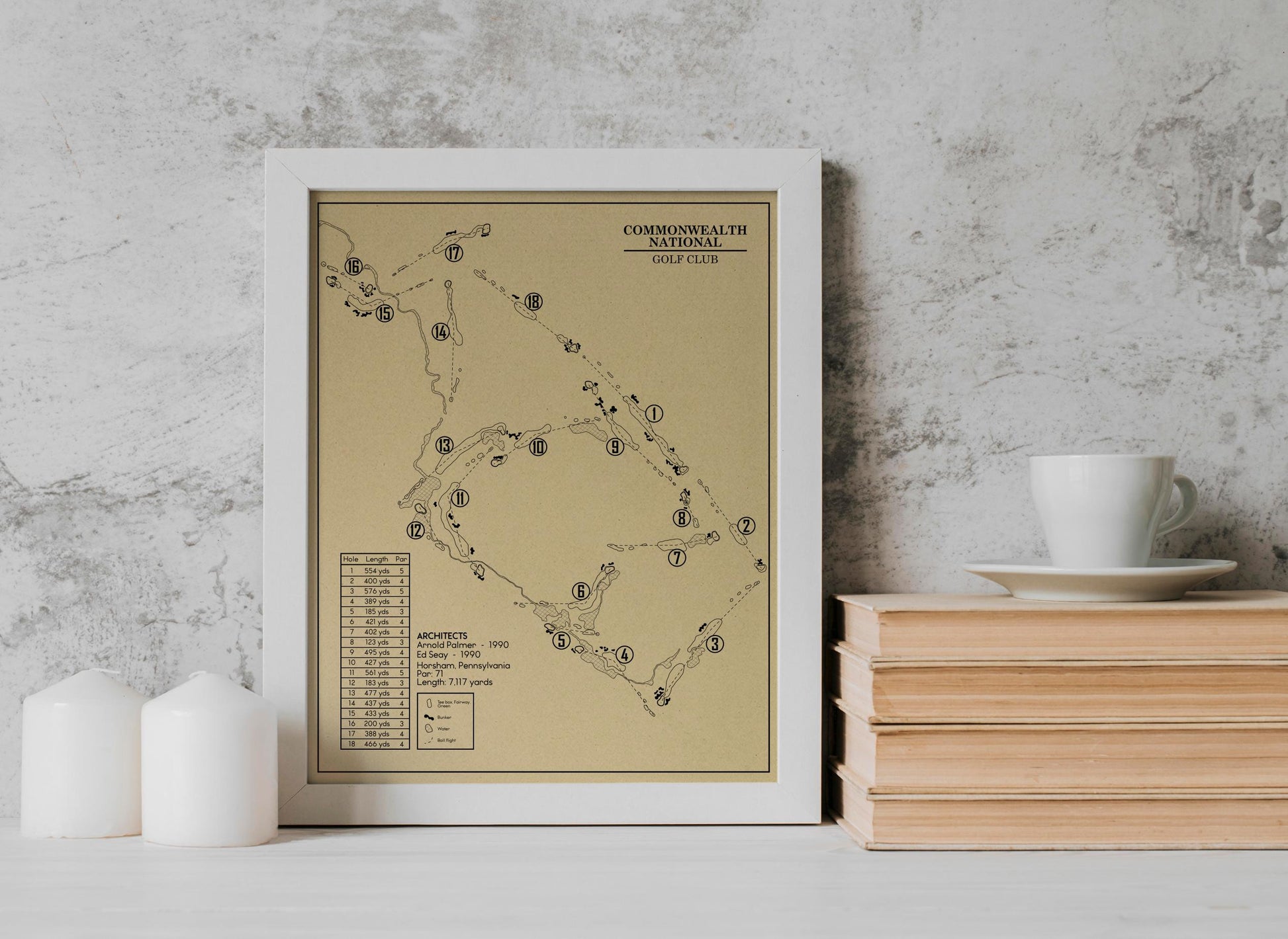 This Golf Course Outline is of Commonwealth National Golf Club in Horsham, Pennsylvania. Included elements of the design are the water and bunker hazards, course length from the tips, and architects.