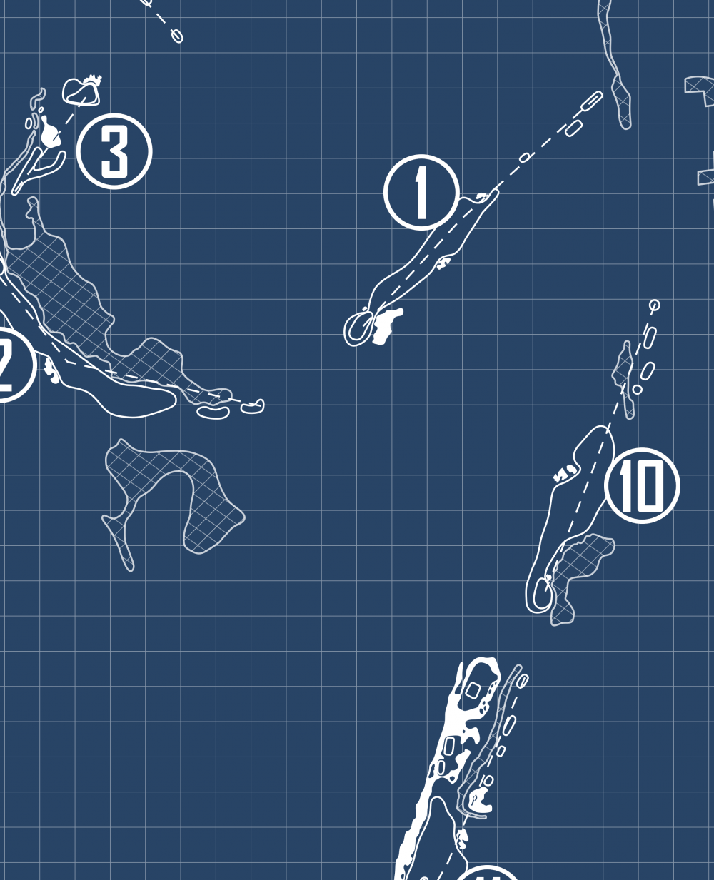 This Golf Course Blueprint is of Old Tabby Links in Spring Island, South Carolina. Included elements of the design are the water and bunker hazards, course length from the tips, and architects.